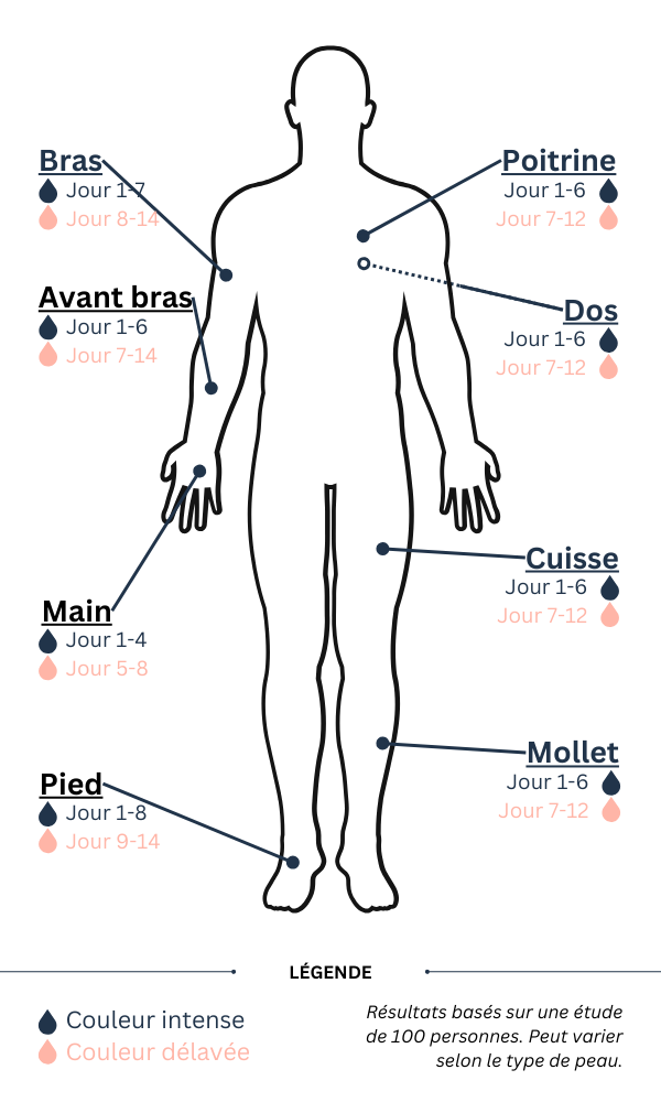 Voici une illustration de la durée de vie d'un tatouage en fonction de l'endroit où il est appliqué.