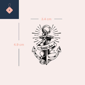 Esplora altri piccoli tatuaggi e trova l'accessorio perfetto per ogni occasione. Fai navigare il tuo lato selvaggio con il nostro tatuaggio Anchor with "Wild Sea" Text! 🌟