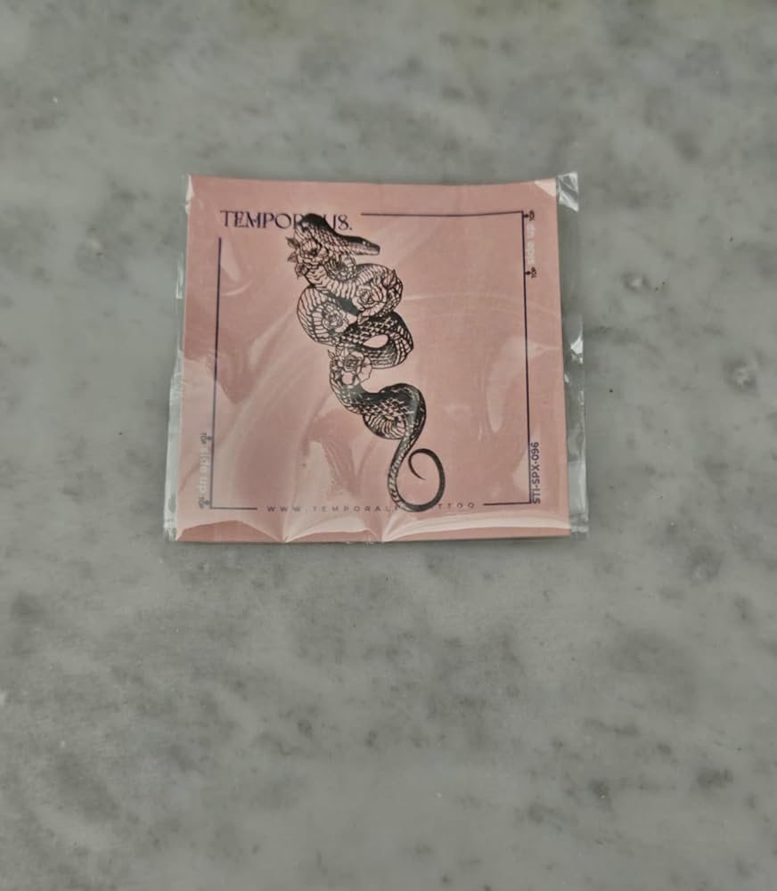 Maak je klaar om hoofden te laten omdraaien en je unieke stijl uit te drukken met onze Slang met bloemen tijdelijke tattoo. Bestel nu en laat je innerlijke schoonheid bloeien! 🌸🐍