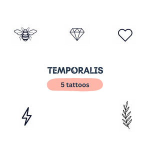 Wprowadź odrobinę natury i symboliki do swojego stylu dzięki zestawowi tatuaży Nature's Symbols. To wyjątkowe połączenie 5 wzorów -pszczoły, diamentu, serca, błyskawicy i liścia - oddaje elegancję, siłę i indywidualność. Niezależnie od tego, czy szukasz subtelnego dodatku, czy wyrazistego elementu, ten zestaw jest idealny na każdą okazję.