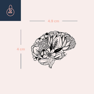 Tymczasowy tatuaż z bukietem kwiatów w kształcie mózgu