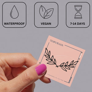 Oavsett om du ska gå på bröllop, festival eller bara vill piffa upp din vardagsstil är denna tillfälliga tatuering med olivkvist en mångsidig accessoar som passar alla tillfällen. Kolla in vår kollektion med små tatueringar för fler härliga mönster!